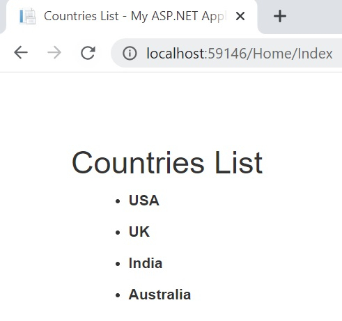 @Html.Action("Countries", new { countries = new List<string>() { "USA", "UK",