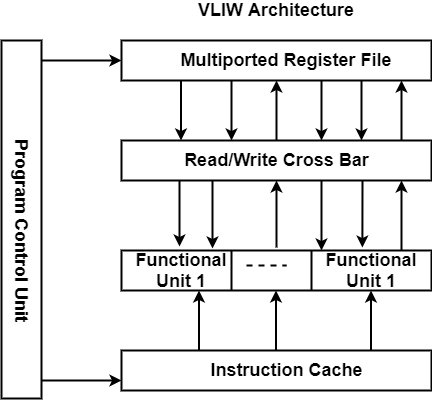 VLIW 代表超長指令字 (VLIW) 架構。它是利用程式中指令級並行 (ILP) 的一種合適替代方案,尤其是在一次執行多個基本(原始)指令時。