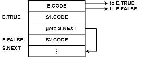 如果 E.CODE 為假,控制將跳轉到 E.FALSE,這將導致執行 S 之後的下一條語句。