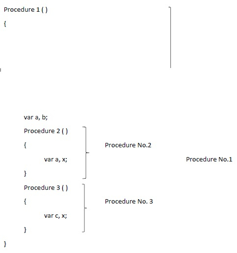 - 每個過程或子程式都將具有其內容的不同表表示。當搜尋識別符號時,將匹配正確的表,即子程式或過程編號和識別符號名稱。