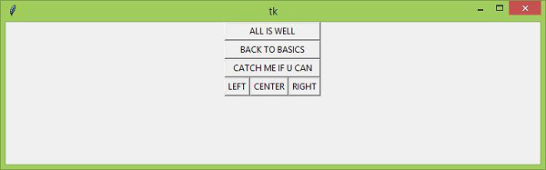 執行以上程式碼將顯示一個視窗,其中包含使用 pack 管理器定義的一些按鈕。