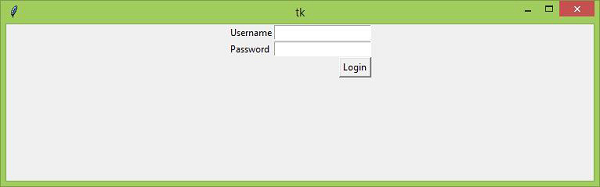 執行以上程式碼將顯示一個視窗,其中包含使用者名稱、密碼輸入小部件和一個按鈕。