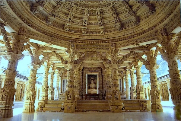 **拉納克普爾耆那教寺廟 (Ranakpur Jain temple)** − 拉納克普爾寺廟位於拉賈斯坦邦的烏代浦爾。這裡的主四面神廟供奉得道者阿迪納特 (Adinatha)。“Chaumukha”字面意思是四面,象徵著四個方向的智慧。另一座寺廟供奉第23位得道者帕什瓦納特 (Parashvanatha)。