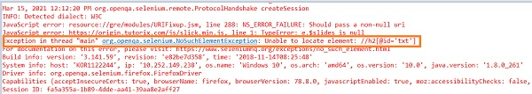 如果使用 xpath 在 HTML DOM 中找不到某個元素,則會引發 NoSuchElementException。當 WebDriver 嘗試定位某個在 DOM 中不存在的 Web 元素時,會引發此異常。如果我們為某個元素建立了不正確的 xpath,通常會遇到此異常。
