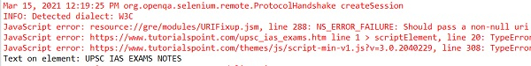 import org.openqa.selenium.By; import org.openqa.selenium.WebDriver; import org.openqa.selenium.WebElement; import org.openqa.selenium.chrome.ChromeDriver; import java.util.concurrent.TimeUnit; public class ElemntsText{ public static void main(String[] args) { System.setProperty("webdriver.chrome.driver", "C:\Users\ghs6kor\Desktop\Java\chromedriver.exe"); WebDriver driver = new ChromeDriver(); //implicit wait driver.manage().timeouts().implicitlyWait(5, TimeUnit.SECONDS); //URL launch driver.get("https://tutorialspoint.tw/upsc_ias_exams.htm"); //identify an element with tagname WebElement e = driver.findElement(By.tagName("h2")); String str = e.getText(); driver.quit(); } }