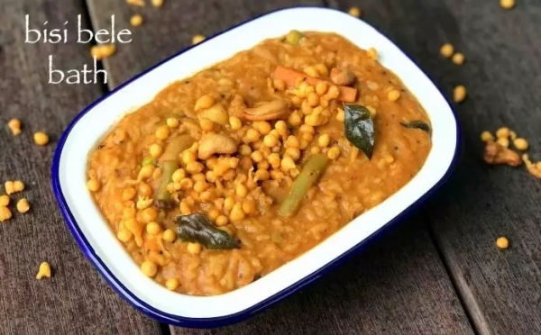 你的Bisi Bele Bath 做好了。搭配油炸腰果和邦迪配料,再加一些酥油一起食用。