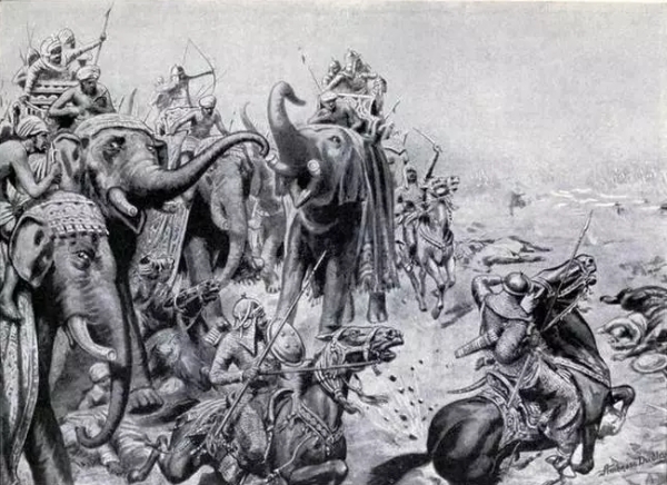 1526 年,德里蘇丹易卜拉欣·洛迪的高壓統治被來自喀布林的帖木兒後裔巴布林的莫臥兒軍隊擊敗。巴布林軍隊最大的優勢在於,巴布林有槍,這成為決定性因素。易卜拉欣·洛迪沒有任何野戰炮,而巴布林軍隊的大炮聲嚇到了易卜拉欣的戰象。這給易卜拉欣造成了極大的損失,因為他計程車兵被受驚的大象踩在腳下。