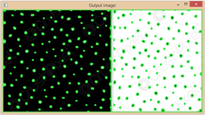 在上面的示例中,我們成功檢測到輸入影像上的16個白點,所有白點都以綠色突出顯示。