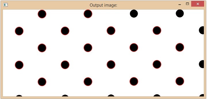 在上面的程式碼中,cv2.DRAW_MATCHES_FLAGS_DRAW_RICH_KEYPOINTS確保圓的大小與斑點的大小相對應。在輸出中,我們可以看到給定影像中共有49個黑點。