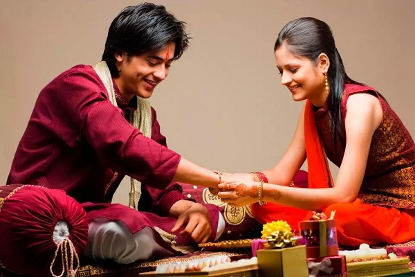 Raksha Bandhan或Rakhi Bandhan通常在八月份舉行,在印度教歷的Shravana月舉行。姐姐繫上Rakhi(吉祥的線),肯定了親情的紐帶。然後,兄弟會由他的姐姐餵食糖果,作為回報,他會給她一些禮物或象徵。