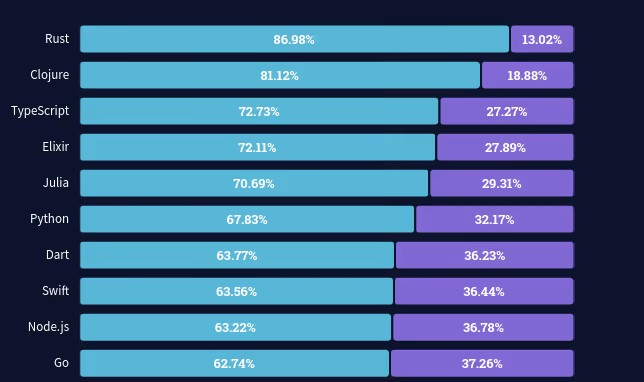 如前所述,在 Stack Overflow 2021 年開發者調查中,86.98% 的受訪者將 Rust 評為 2021 年最喜歡的程式語言 -