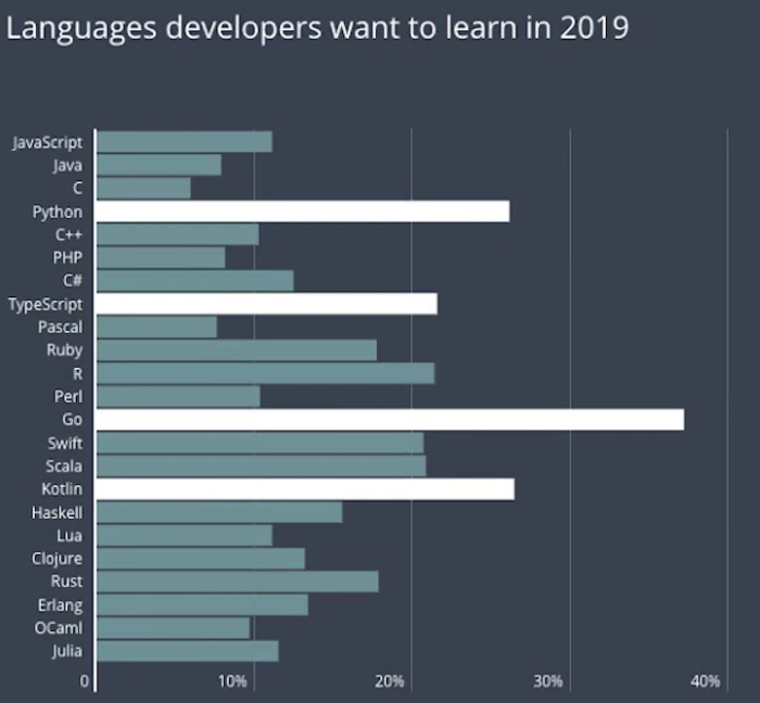 同樣,在 2020 年 HackerRank 開發者技能報告中,受訪者將 Rust 列為他們打算接下來學習的十大程式語言之一 -