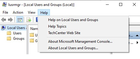 然後,在本地使用者和組的“幫助”選單中選擇“幫助主題”,如下所示: