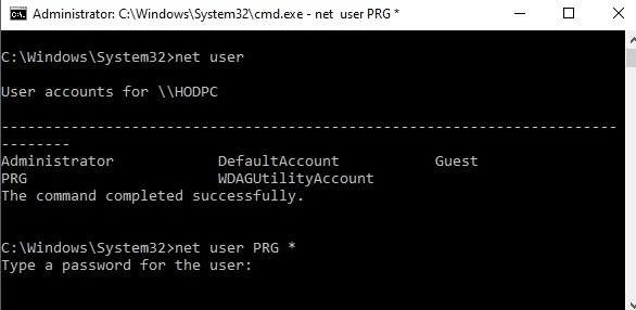 現在,使用net user命令檢視當前以管理員許可權登入的使用者名稱。之後,使用net user *命令重置管理員密碼,如下所示: