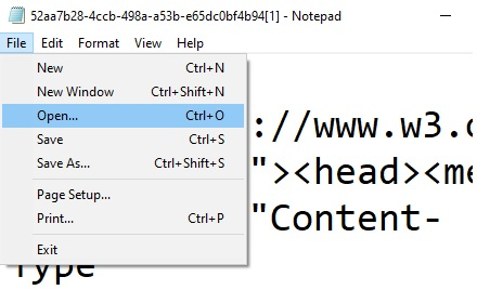 之後,右鍵單擊對話方塊並選擇“檢視原始碼”,然後選擇“檔案開啟”選單,並從記事本檔案中導航到 C:\Windows\System32 路徑。