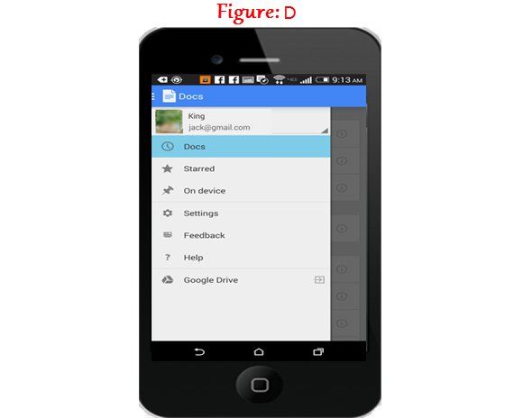 點選螢幕左上角的選單。當選單開啟並顯示許多選項時,點選“裝置上”。如圖D所示。