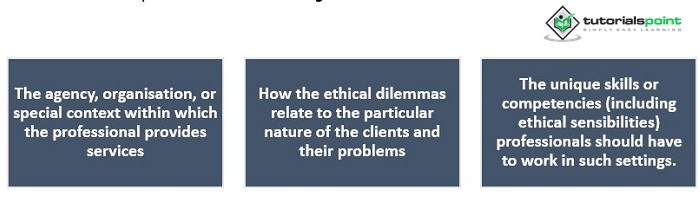 大多數歷史上僱用心理健康從業人員的工作場所都遵循適用於所有行業的廣泛的普遍道德原則。然而,行為科學家和心理健康專業人士正在非傳統工作場所找到更具吸引力的工作前景。在這些環境中,倫理約束或挑戰可能會引發一系列反應,從逐漸喪失職業價值觀到嚴重的情感痛苦。某些環境特別容易引發道德困境。在對與專門工作環境相關的挑戰型別進行分類時,請考慮三個不同的重點領域 -
