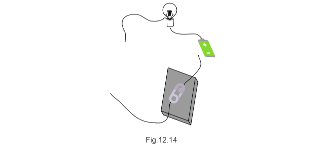 這是一個不完整的電路,因此電路中沒有電流流動。因此,圖12.14所示不完整電路中的燈泡不會發光。