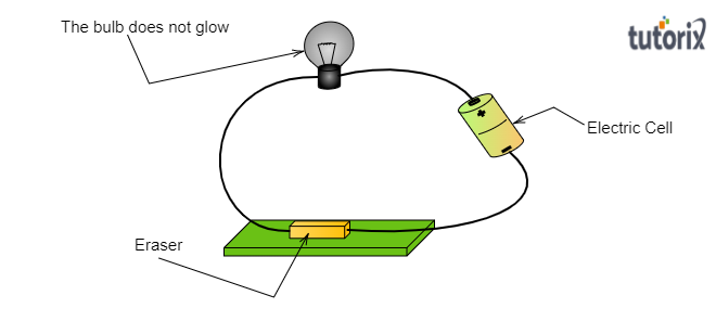 如果使用橡皮擦代替安全別針,燈泡將不會發光。橡皮擦是由橡膠製成的,橡膠是一種絕緣材料,可以阻止電流透過。因此,橡皮擦不會讓電流透過電路,燈泡也不會發光。