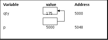 表示“p”是一個指向另一個整數變數地址的指標變數。