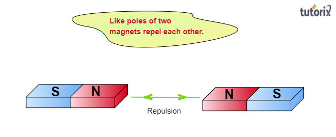 兩個相同的磁極相互排斥,異名磁極相互吸引。當一個磁鐵的北極靠近另一個磁鐵的北極時,它們會相互排斥。同樣,兩個磁鐵的南極也會相互排斥。