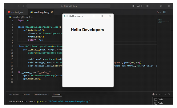 wxPython 是一個強大且靈活的 GUI 工具包,它允許程式設計師建立具有原生外觀和感覺的跨平臺桌面應用程式。WxPython 利用底層 wxWidgets C++ 庫的功能,提供各種部件和事件驅動程式設計,從而簡化了互動式且使用者友好的圖形使用者介面的建立。wxPython 擁有廣泛的文件和活躍的社群支援,因此各種技能水平的開發人員都可以使用。它易於安裝且可透過 pip 訪問,因此是建立功能豐富的應用程式的可行選擇。作為可靠的框架,wxPython 繼續在幫助 Python 開發人員建立引人入勝的桌面應用程式方面發揮著重要作用。