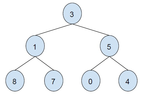 ZigZag traversal of the given binary tree is 3 5 1 8 7 0 4